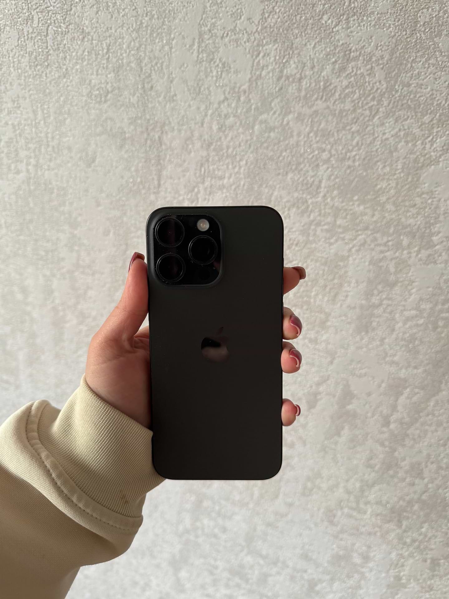 iPhone 15 Pro має міцний та легкий корпус із аерокосмічного титану та задню панель із фактурного матового скла. Його оснащено передньою панеллю Ceramic Shield, що міцніша за скло будь-якого смартфона. Крім того, iPhone 15 Pro захищено від бризок, води й пилу.1