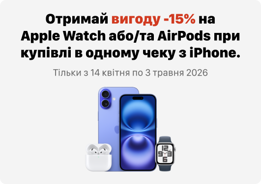 Комплект включає: iPhone 17, Кабель USB-C/Lightning (1м), Документація.