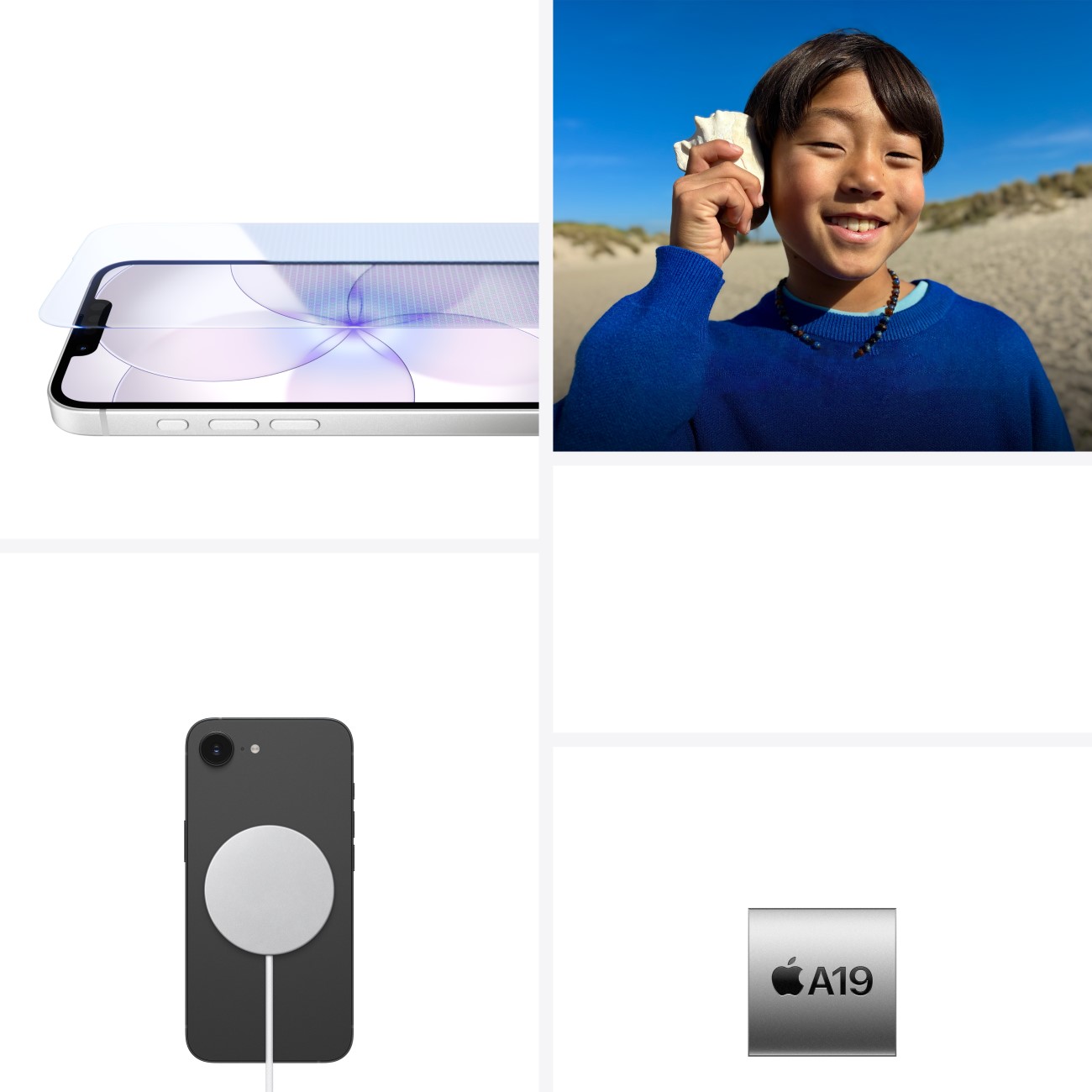 iPhone 17e оснащено чудовим дисплеєм Super Retina XDR 6,1 дюйма,1 швидким і потужним чипом A19, акумулятором, що забезпечує роботу протягом усього дня2 та 256 ГБ початкової пам’яті.