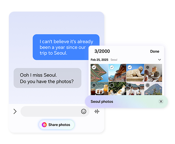 Відкрийте Creative Studio й отримайте окремий простір для створення наборів стикерів. Поєднуйте ескізи або фото з текстом відповідно до вашого задуму. Завдяки простому текстовому опису або приблизному ескізу Galaxy AI створює готові зображення. Потім ви можете додати набір стикерів до своєї клавіатури або поділитися ним із друзями.