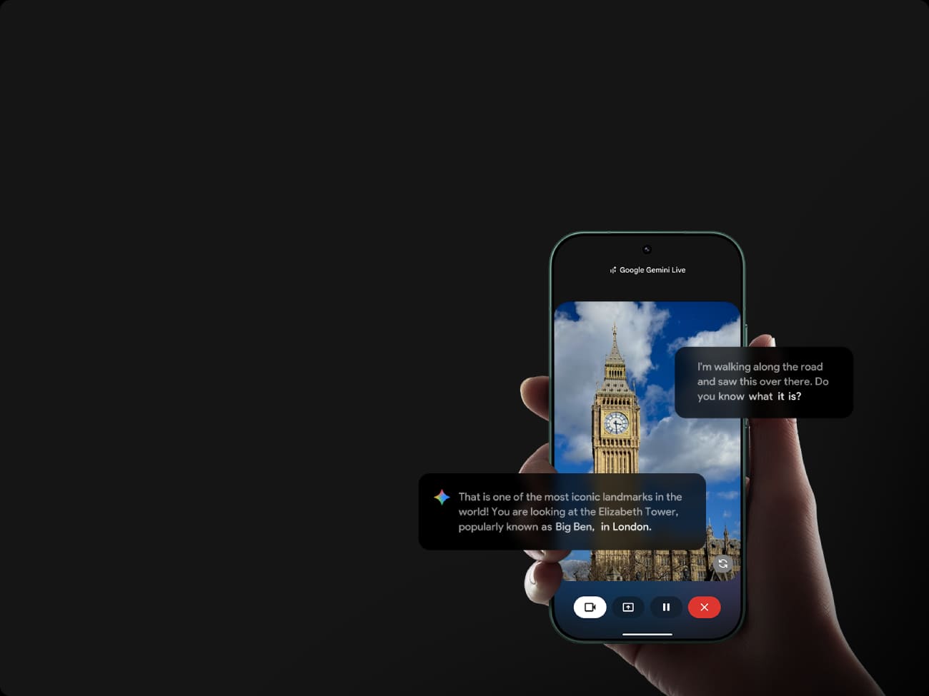 Запитуйте Gemini про все, що бачите. Діліться зображенням із камери або екраном під час живих розмов із Gemini.