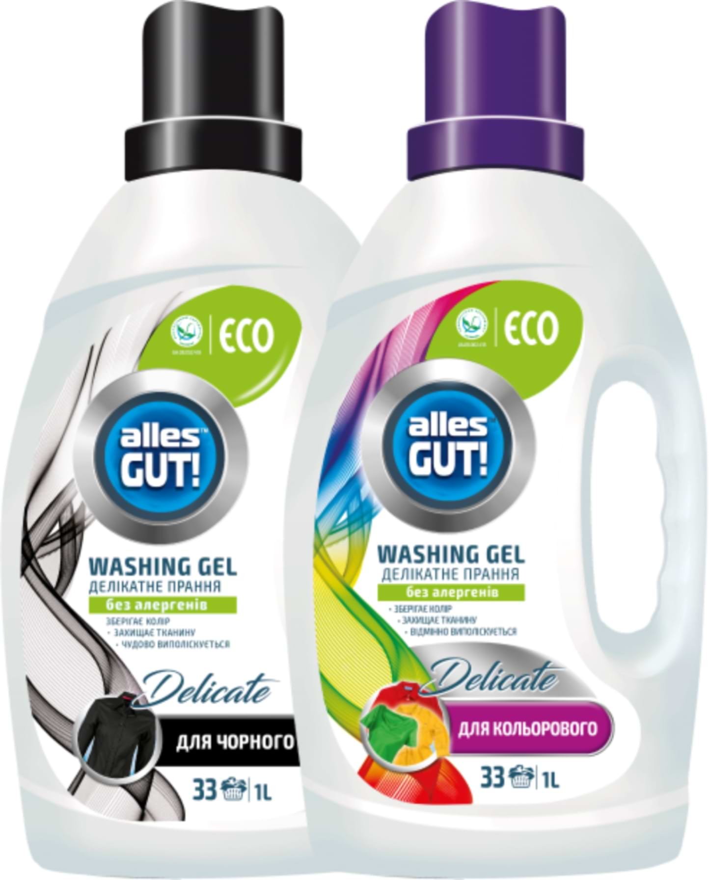 Все про Засіб для делікатного прання Alles GUT! Набір ЕСО д/кольорової білизни 1 л + д/чорних та темних тканин 1 л