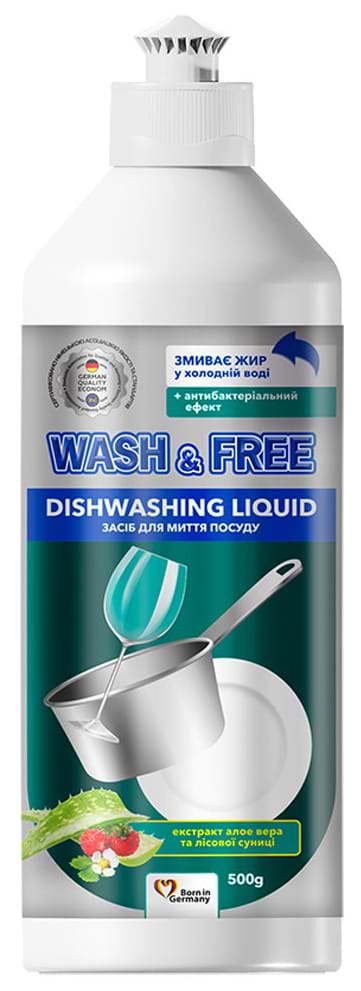 Засіб для ручного миття посуду WASH & FREE Екстракт алое вера та лісової суниці 500г