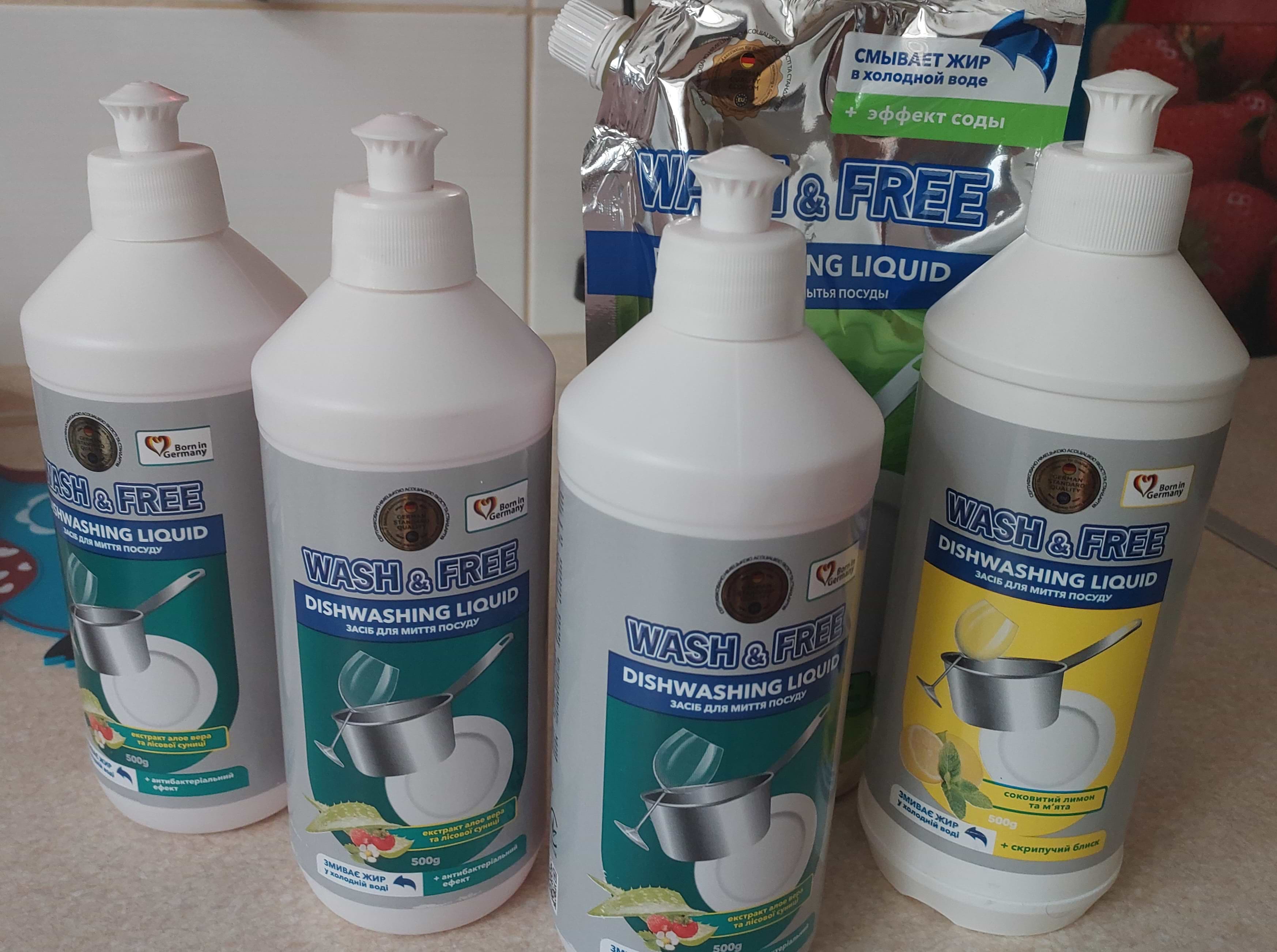 Відмивае хорошо весь жир,посуд аж скрипить. Приемний запах