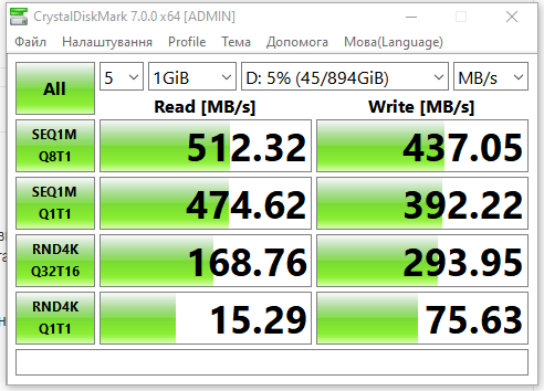 Недорогий, відразу запустився, але чомусь на моїй системі його швидкість не відповідає заявленій виробником. Можливо шось не так з моїм "залізом", бо попередній Patriot на 250 Гб теж по тестам був у двічі повільніший ніж по характеристикам.