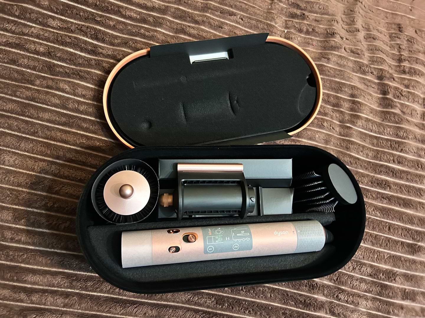 Замовляли онлайн покупкою на магазин . Прийшов швидко , запаковпний в оригінальне пакування. Дружина дуже задоволена, відразу спробувала у використанні . Створює красиву дорогу укладку, як з салону. Якість матеріалів відповідає, насадки та гребінець всі в комплекті , колір супер. Всім радимо хто ще вагається .