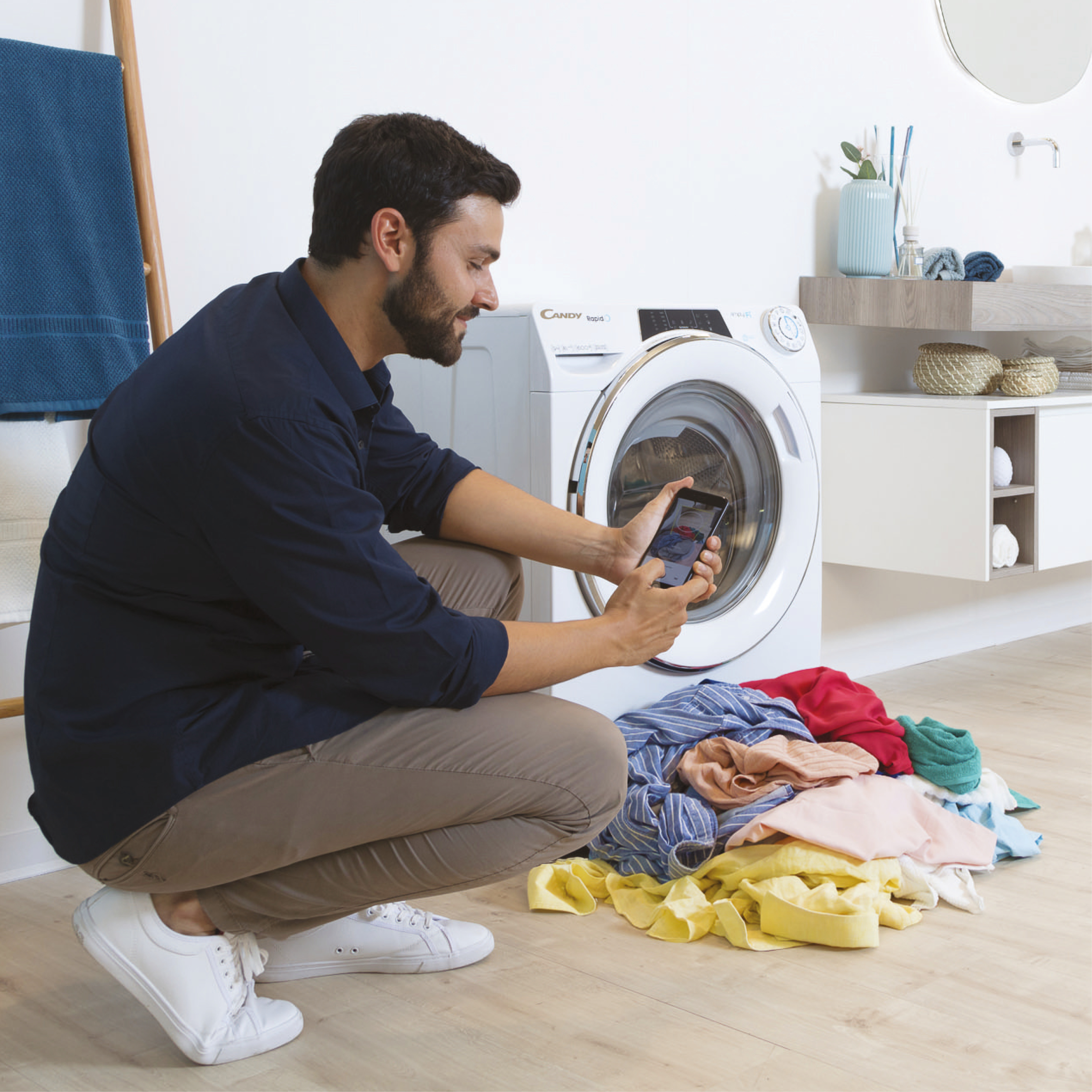 Готові спробувати щось нове? За допомогою смартфона зактивуйте через застосунок Candy simply-Fi ексклюзивну функцію Snap&Wash (сфотографуйте та періть) і знайдіть найоптимальніший цикл для прання вашої білизни. Для допомоги з вибором програми швидкого прання просто сфотографуйте купу змішаного одягу. Ця функція порекомендує найоптимальнішу програму прання, температуру й швидкість викручування. Розумний спосіб заощадити час.