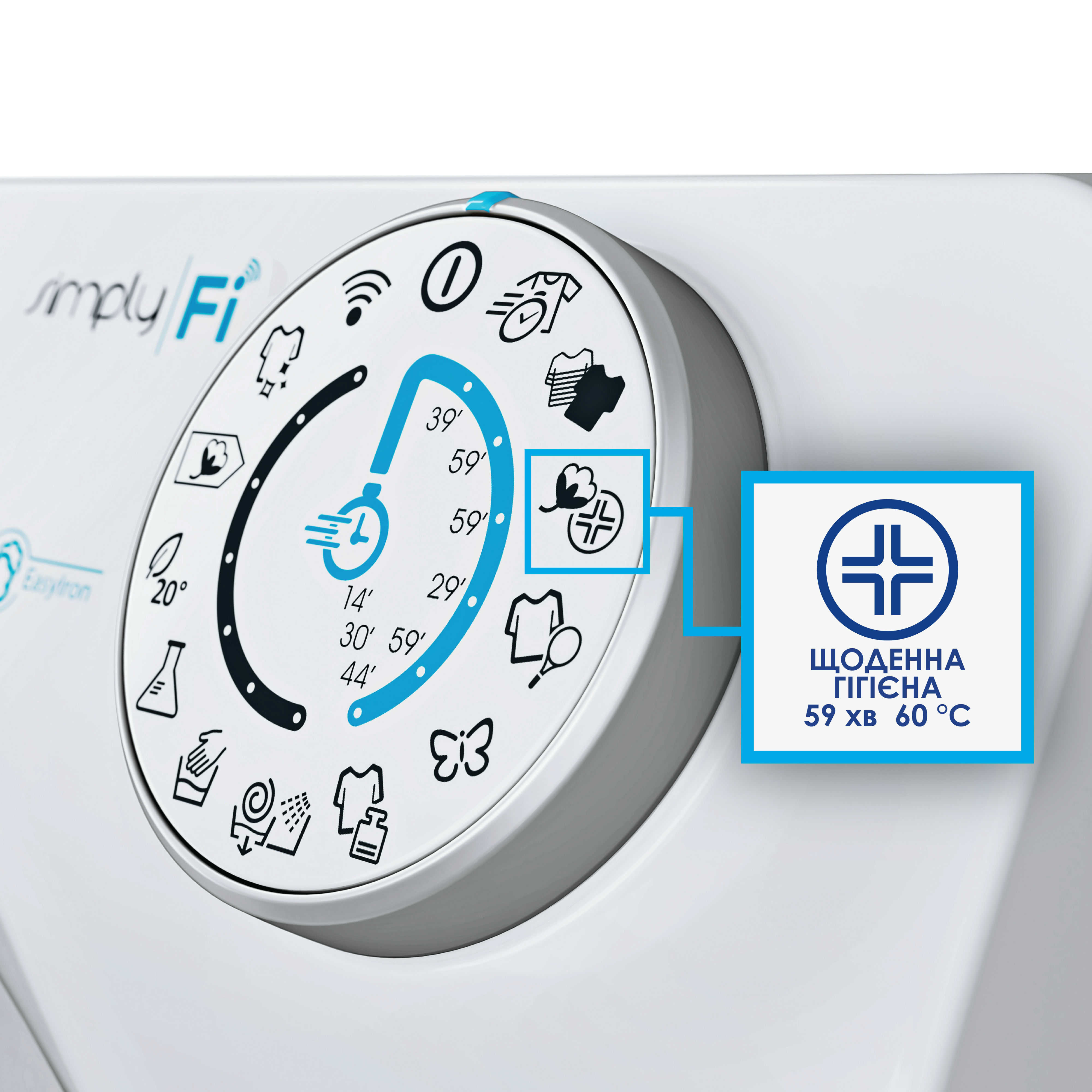 Виберіть програму швидкого прання Daily Hygiene («Щоденна гігієна») для дезінфекції та глибокого очищення одягу. Цикл прання триває лише 59 хвилин за постійної температури 60 °C. Такий режим дозволить надійно очистити одяг усіх членів вашої родини від алергенів, мікробів, бактерій та інших чинників, що негативно впливають на здоров’я за короткий проміжок часу.
