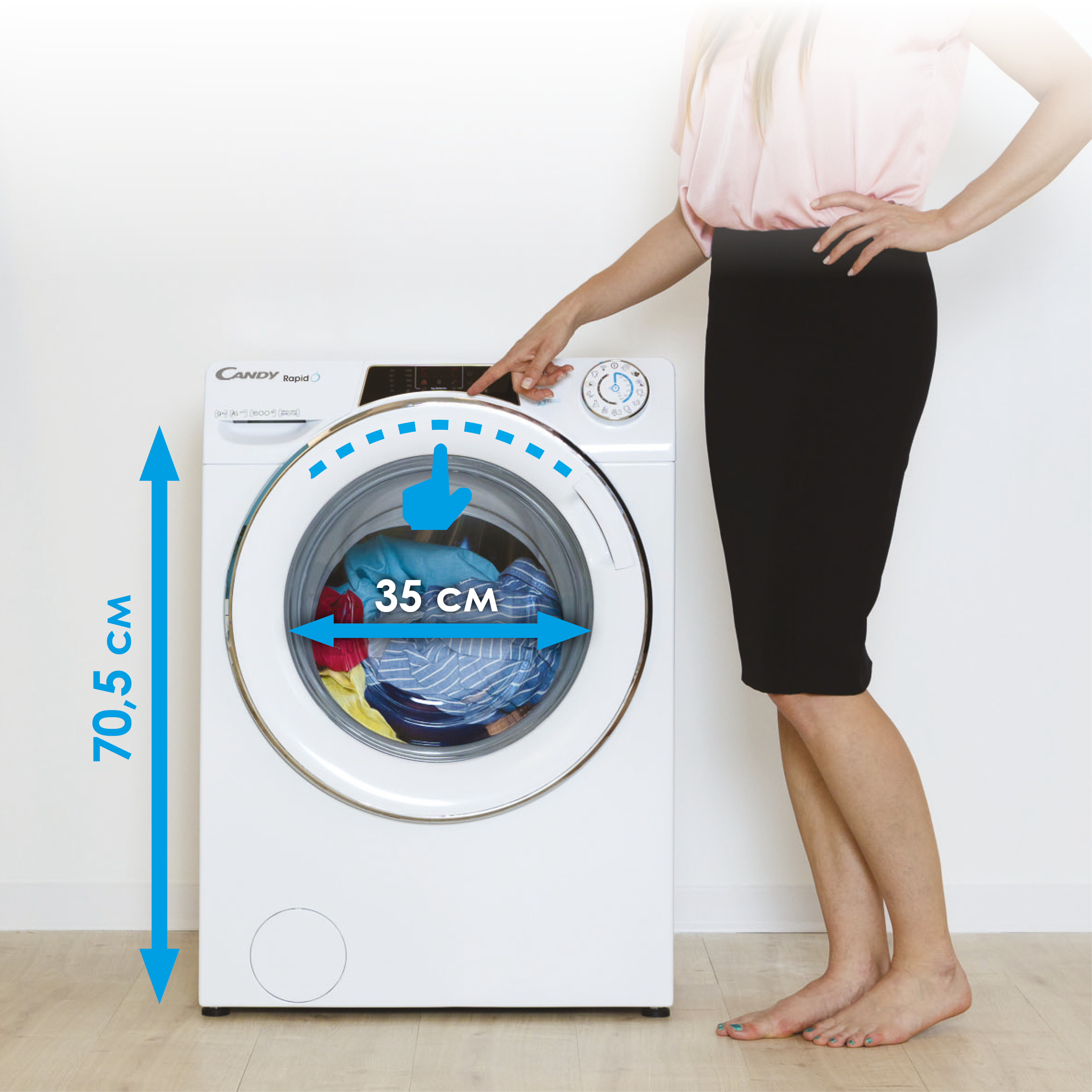 Інноваційний ергономічний дизайн Candy RapidÓ розробили спеціально, щоб позбавити вас будь-якої мороки під час прання. Ще ніколи не було так легко й зручно завантажувати та діставати білизну й керувати пральною машиною.