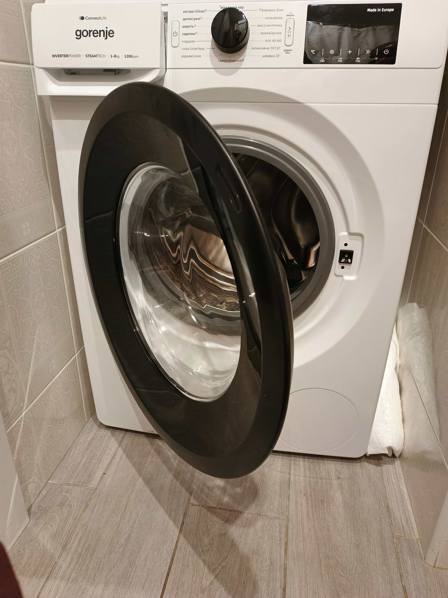 Пральна машина Gorenje оснащена великими дверцятами із цільного пластику без гвинтів, що забезпечує надійну конструкцію та бездоганну тишу при відкриванні та закриванні. Дверцята відкриваються на 180 градусів, роблячи процес завантаження та вивантаження білизни максимально зручним. Тепер вам не потрібно турбуватися про скрипи - насолоджуйтесь легкістю використання щоразу. Міцні та зручні дверцята створені для вашого комфорту!