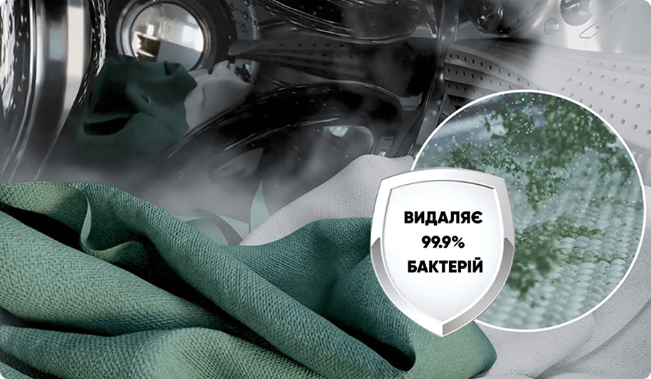 У вибраних програмах можна активувати подачу пари. Це дозволяє дезінфікувати одяг і позбутися бактерій. Крім того, пара пом’якшує й розгладжує волокна тканини, полегшуючи видалення забруднень, зменшуючи кількість складок і спрощуючи прасування.