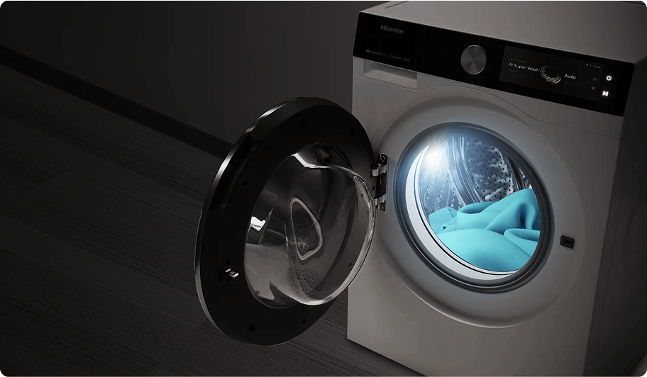 Пральні машини Hisense серії 7S обладнані розумним підсвічуванням барабана, яке нагадує про завершення циклу прання та потребу дістати речі. Підсвічування також допомагає спостерігати за процесом навіть у темному приміщенні.
