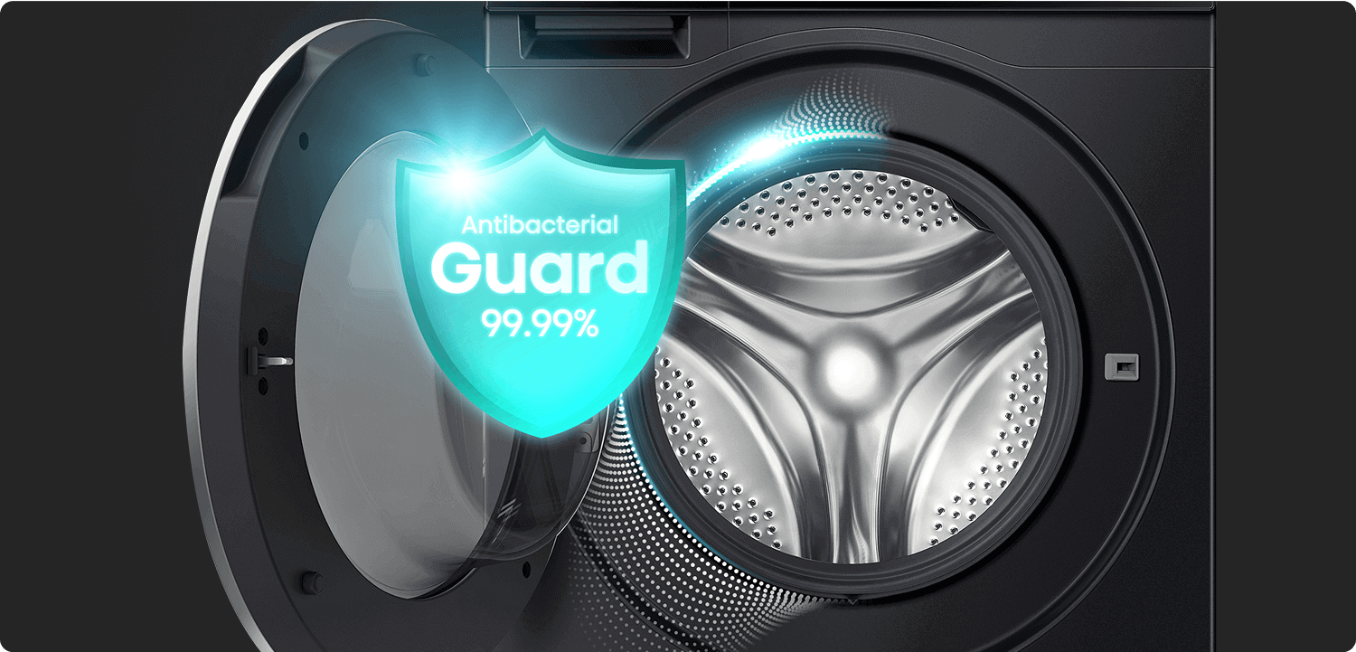 Антибактеріальний матеріал гумового ущільнювача гарантує чисте та безпечне прання, а функція Pure Jet ретельно очищує дверцята й манжету. Ваш одяг і пральна машина завжди у повній свіжості!
