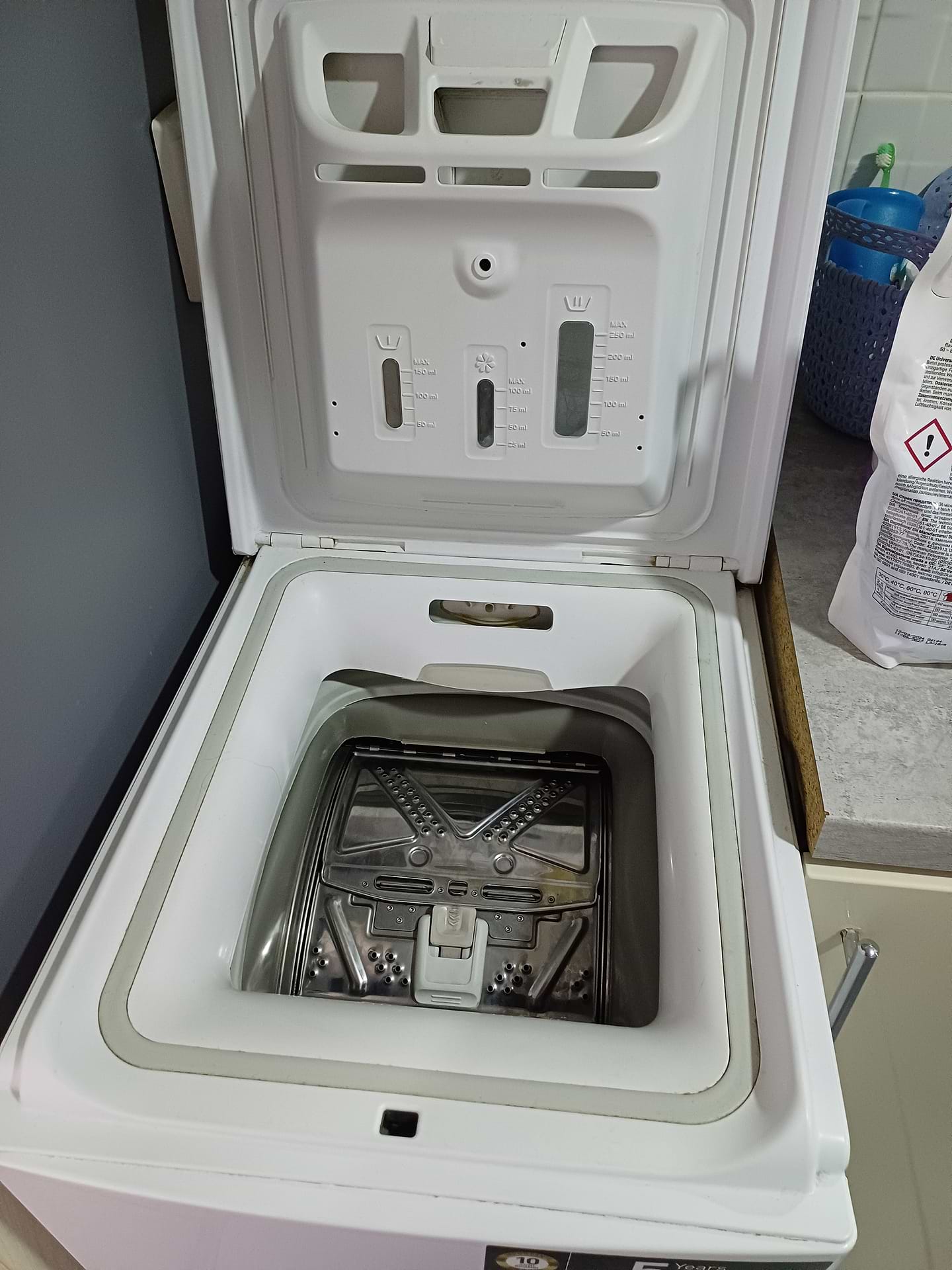 В использовании 5 лет. На втором году начала вздуваться краска, дальше - гниет не по дням, а по часам (в ванной с вытяжкой и тёплым полом). Бывали приколы с странным произвольным звуком, когда машинку не выключали с розетки и она стояла открытая. Кондиционер заливать нет смысла, с отсека он полностью не вымывается и потом плесневеет. Тихой она и раньше особо не была, но сейчас - торохтит страшно. Крышку отдельно не купишь, что с ней делать - тоже сервис не подсказал. Так и живём
