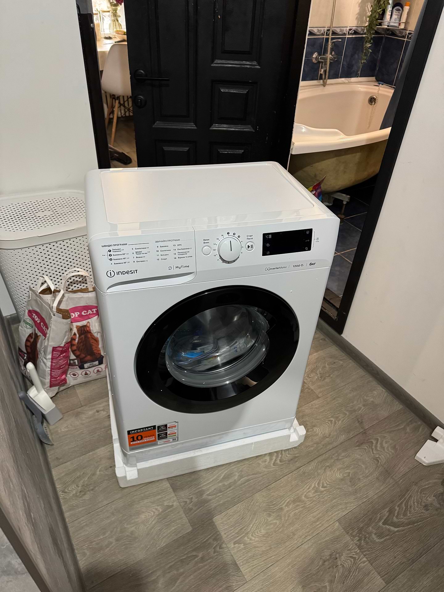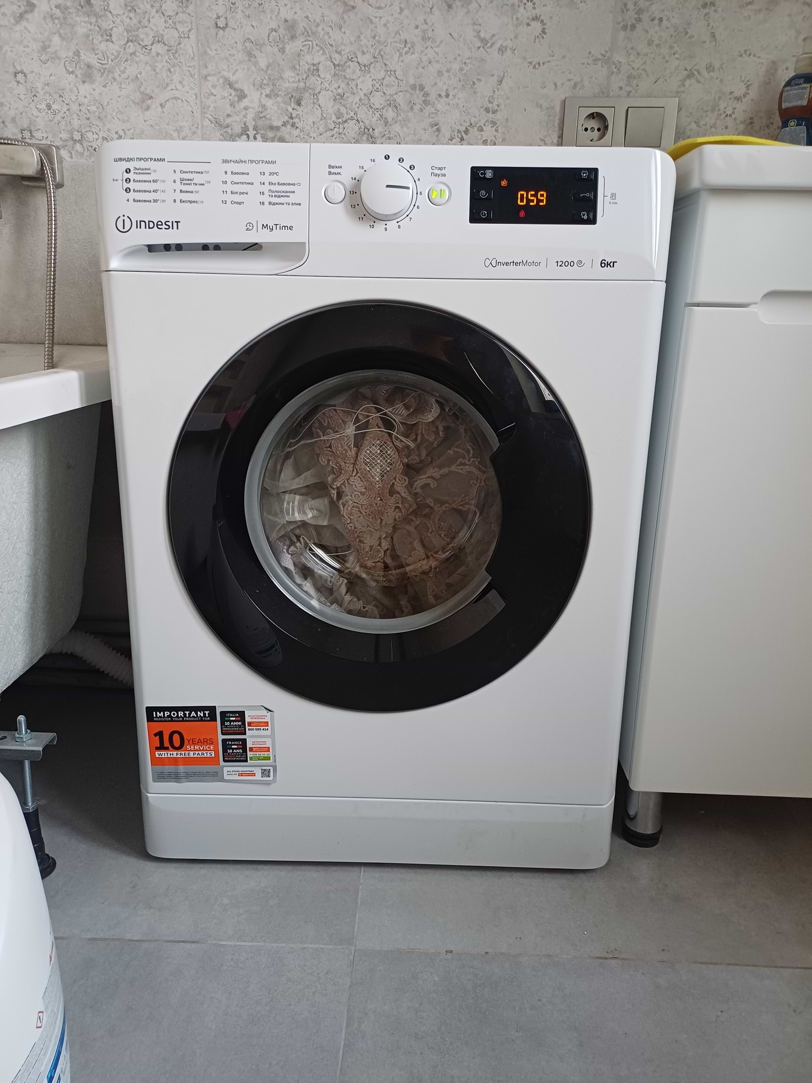 Пральна машина дуже гучна, коли віджимає просто «підлітає» ледве не сбила нам унітаз. Також у відсіку для кондиціонеру застоюється вода. Та провід закороткий.