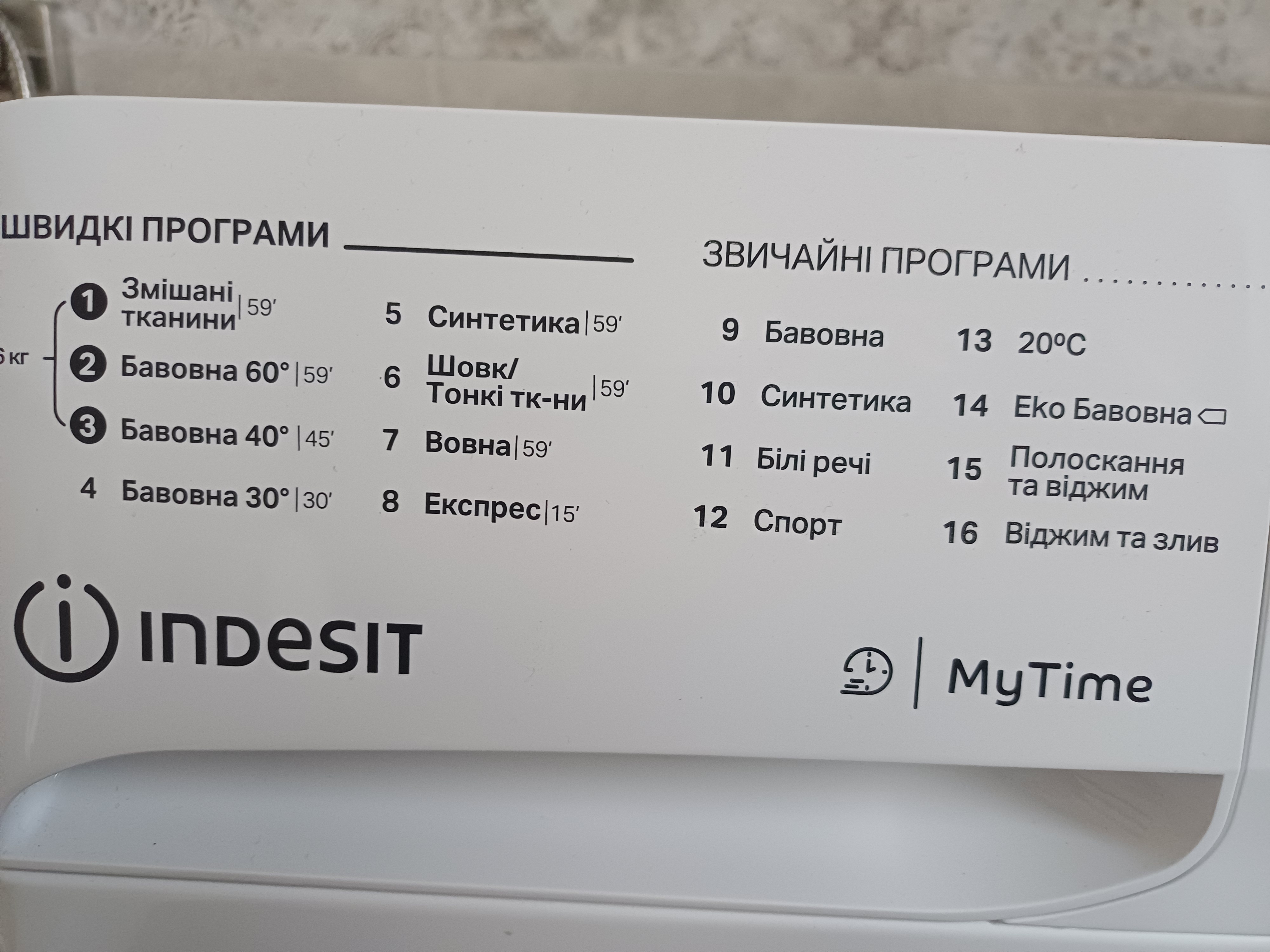 Режими прання недовготривалі