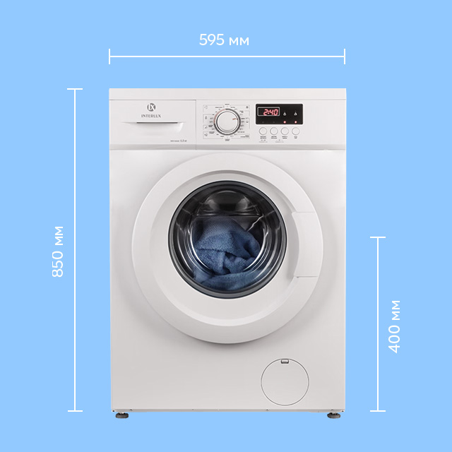 Пральна машина INTERLUX IWM-0606W вміщує до 6 кг білизни, при цьому має компактні розміри - глибина 400 мм, висота 850 мм, та ширина 595 мм.