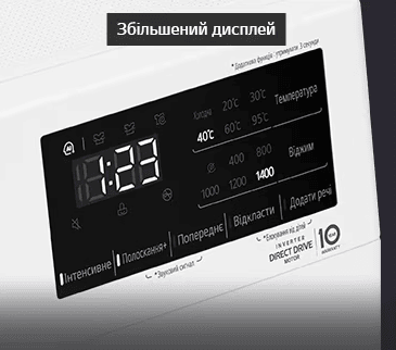 Машина оснащена чітким дисплеєм, на якому зручно слідкувати за процесом прання.