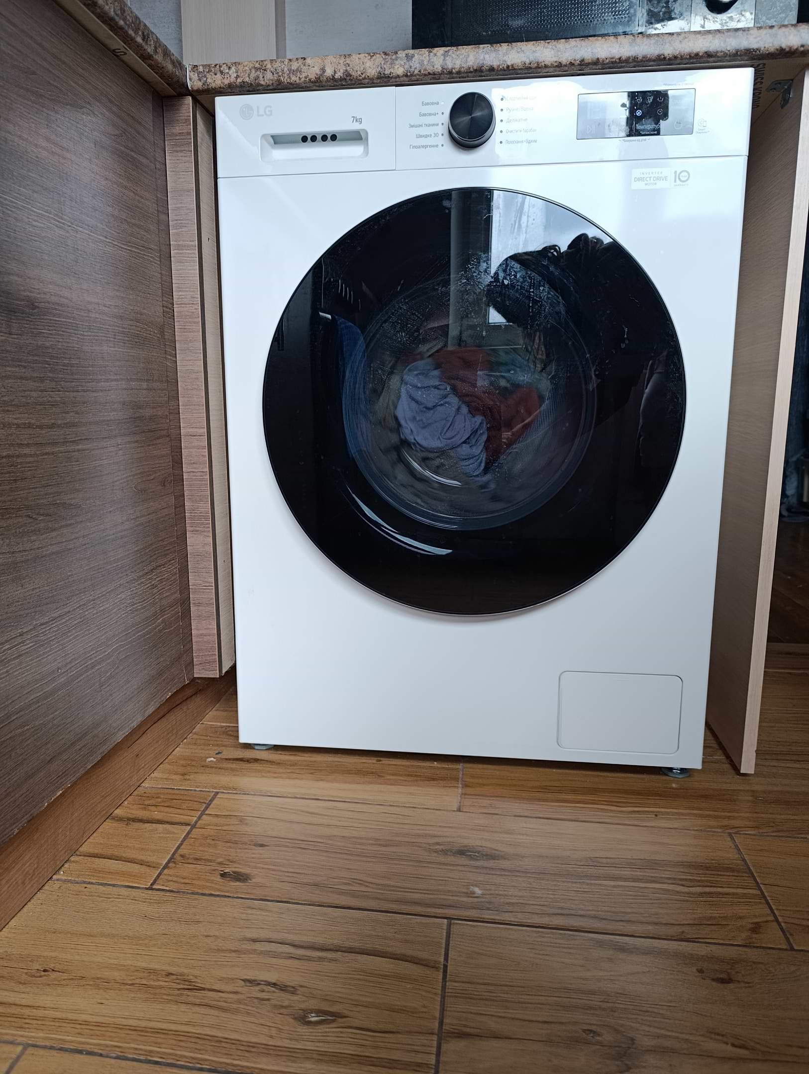 Пральна машина у користуванні близко 3 тижнів. Працює тихо! Покупкою задоволена! Обрала саме LG, оскільки попередня цієї ж фірми бездоганно (з безліччю переїздів) працювала 12 років. Плюс зйомна кришка!
