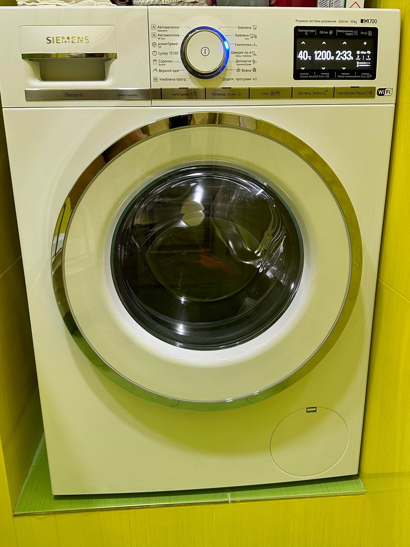 Минуло 2 тижні, з програмами розібралися, реально класний апарат. Велика перевага у тому, що інтелект скорочує час роботи в залежності від об'єму білизни, якість прання суттєво відрізняється від попередньої пральної машини. Поки що не змогла підібрати сушарку такого ж класу. Питання до siemens.bsh-group, коли знову з'являться в Україні сушарки IQ 700 SIEMENS WT47XEH1OE? Чому зараз немає постачання в Україну якісних товарів? Чому знову тільки везуть сірий імпорт, на який не буде гарантійного обслуговування?
