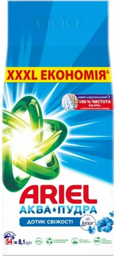 Пральний порошок Ariel Аква-Пудра Дотик свіжості Lenor авт. 8,1кг