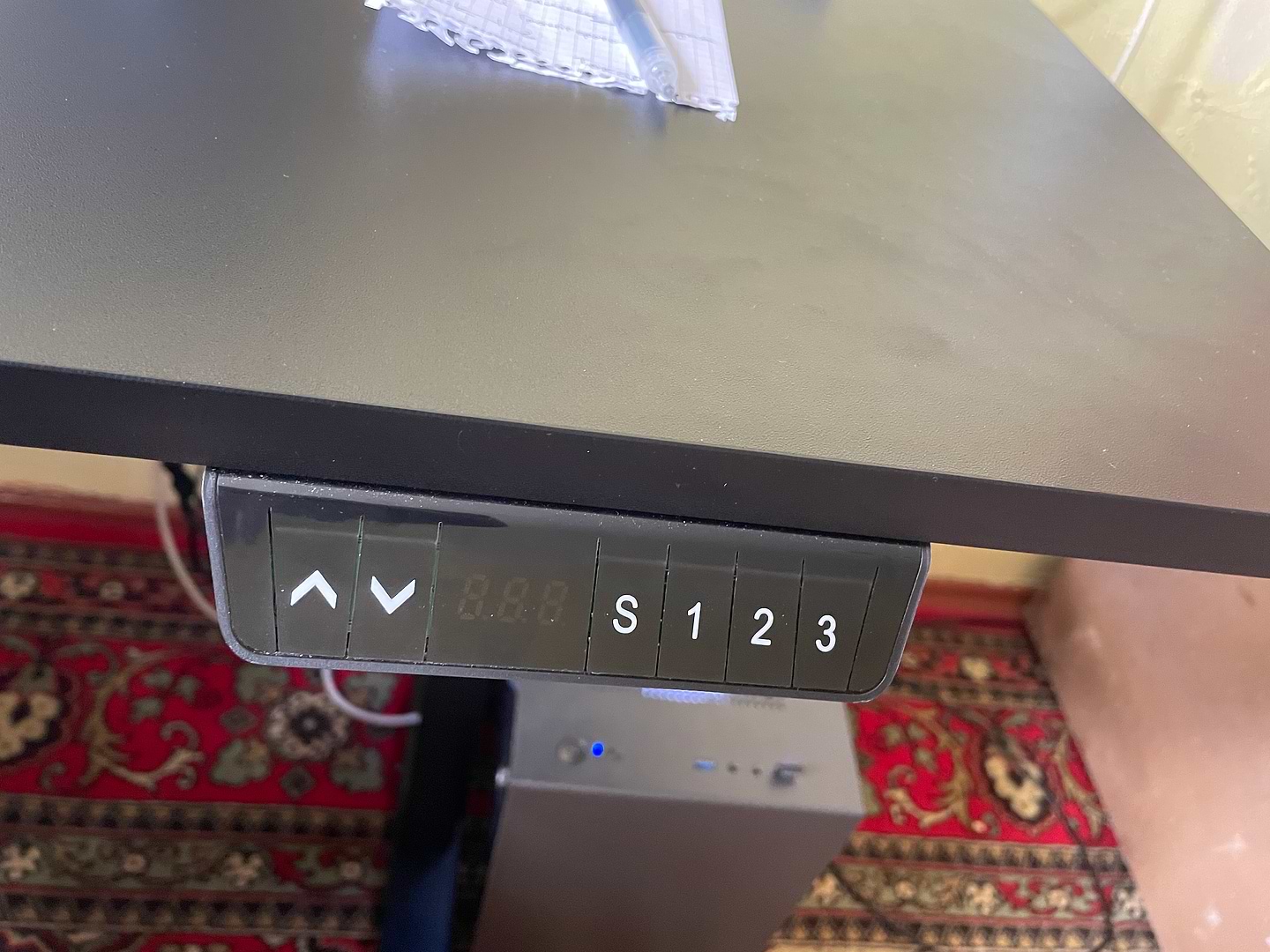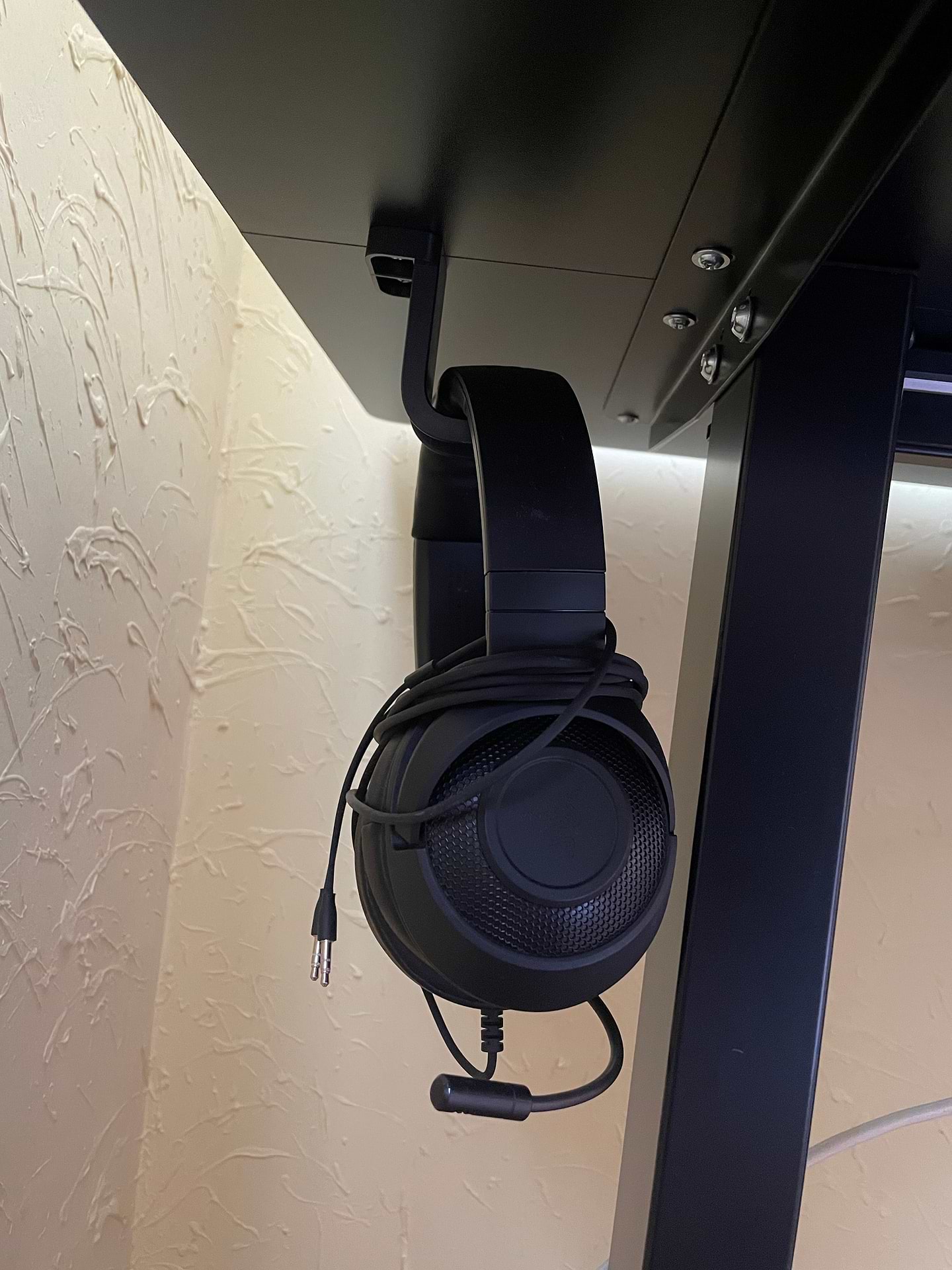 За свої гроші гарно укомплектований а саме управліня з прорамуваням на 3 режими, корзинка для мережевого фільтра та дротів, отвори під кабелі в столі, крючки для навушників.