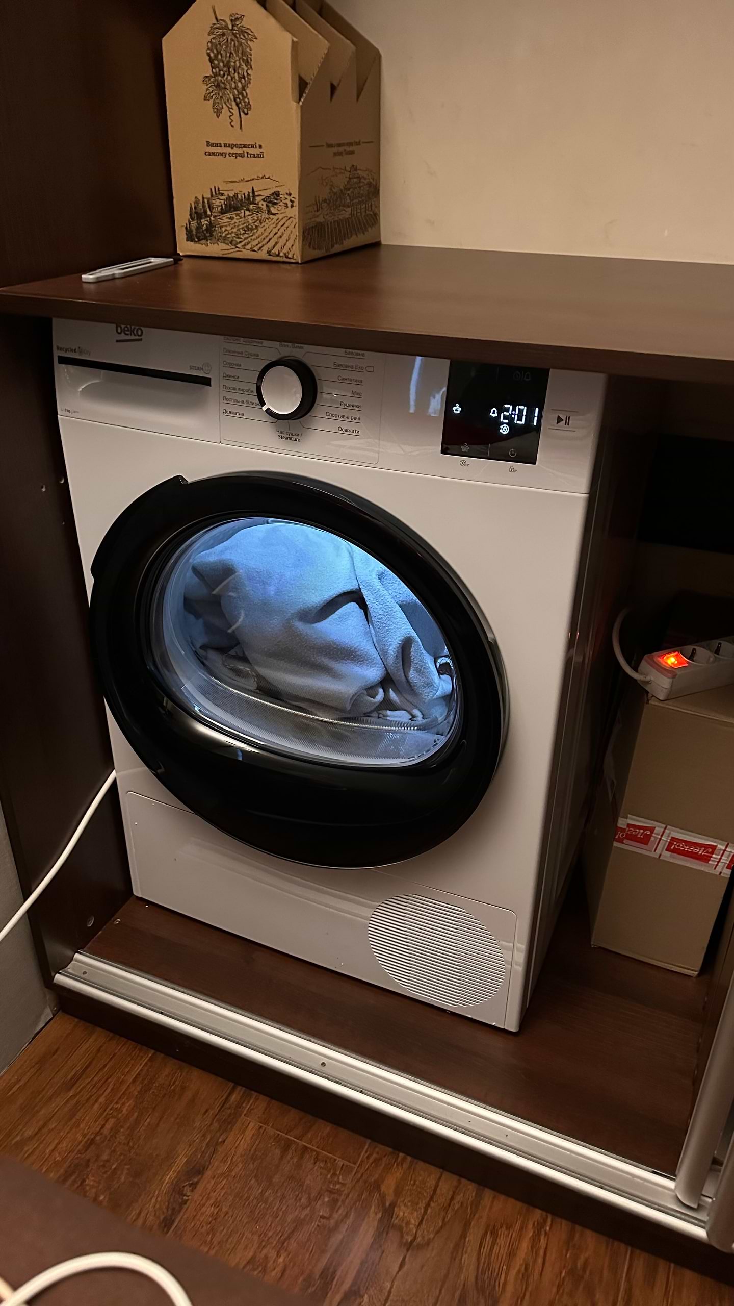 не погана за свої гроші сушарка, економна по електроенергії бо з тепловим насосом. багато режимів сушки, доволі швидко працює. Трохи шумно, але якщо закрити двоє дверей то не чутно майже.