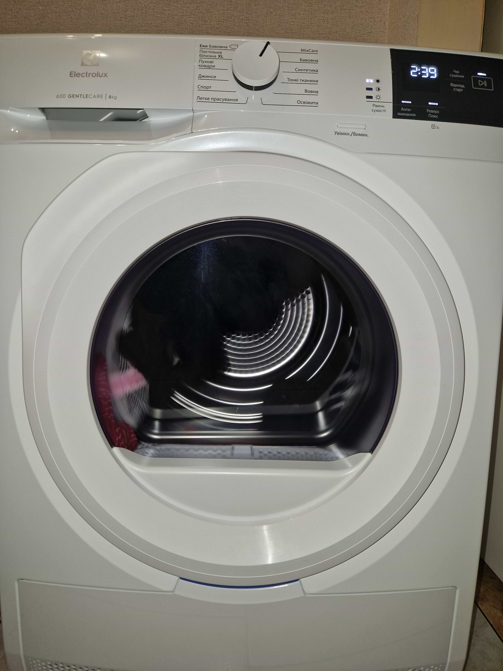 Корегує час сушіння в залежності від ваги речей. Гарно висушує речі