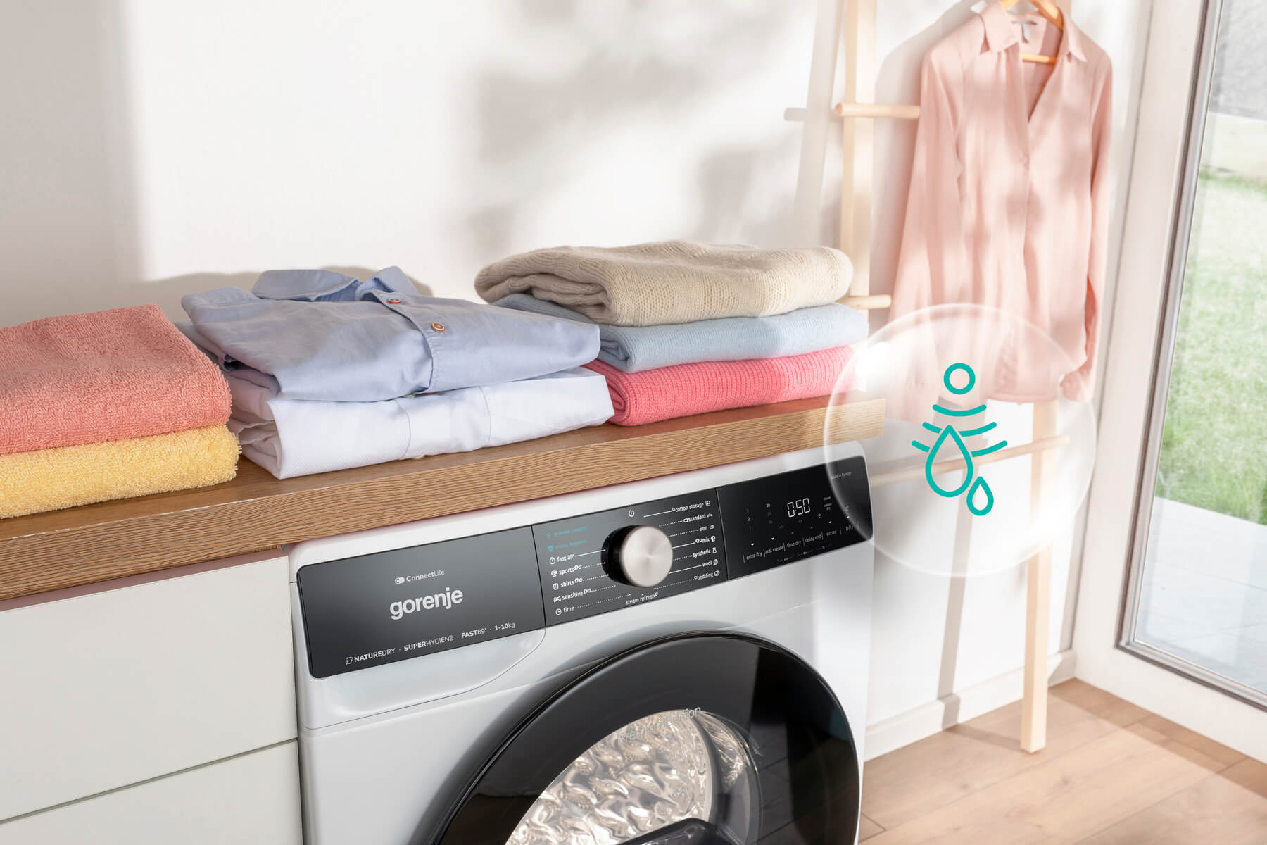 Теплові насоси — це про високу енергоефективність, економію та делікатне сушіння порівняно з традиційними системами. Температура в насосі підтримується на рівні 50°C, що дозволяє сушити майже всі види тканин та одягу, і не створювати усадку та пересихання. Плюс до цього — волога зсередини ніколи не потрапляє назовні у приміщення.