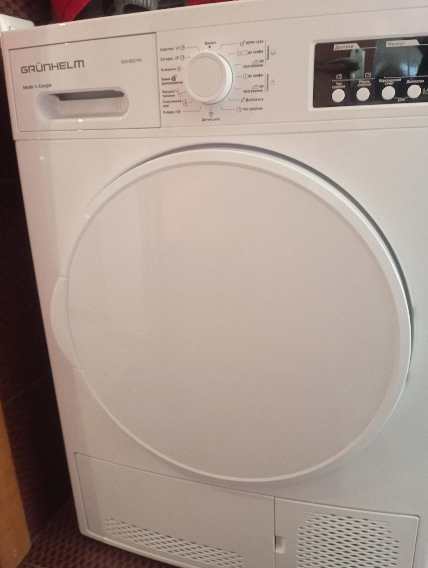 Сушильна машина супер. За 30 хвилин сухірушники та постіль. Навіть Бош довше сушила. Задоволена