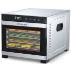 Сушилка имеет в комплекте 6 поддонов из нержавеющей стали, 1 пластиковый поддон для жидкости и 1 поддон из нержавеющей стали с мелкой сеткой. Эти секции обеспечивают достаточно места для сушки большого количества продуктов за одну простую операцию. Подносы и подкладки полностью подходят для мытья в посудомоечной машине. Корпус также можно легко протереть влажной тканью.