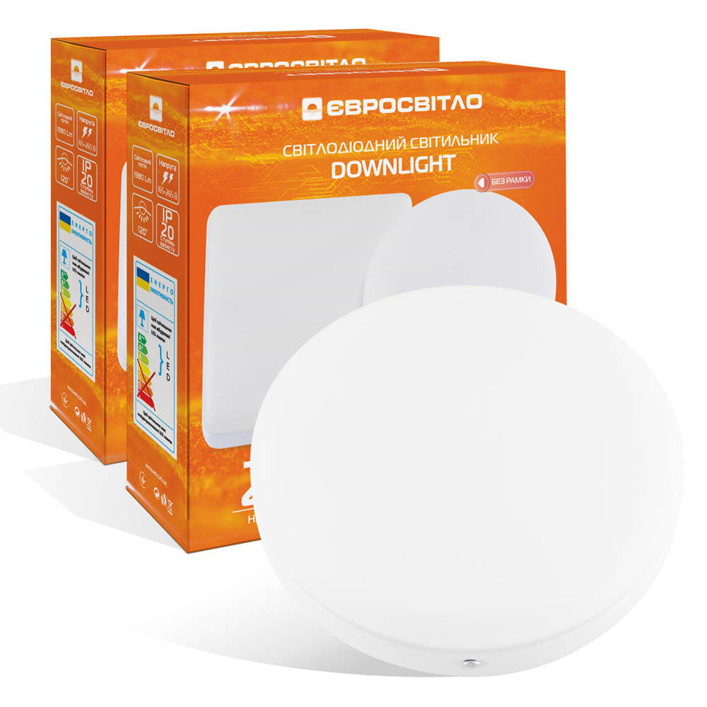 Все про Світлодіодний світильник Євросвітло точковий накладний 24Вт коло LED-SR-170-24 4200К без рамки 2 шт. (000059003)