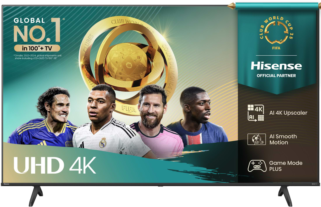 Hisense пропонує широкий вибір діагоналей: від компактних до вражаюче великих – рішення знайдеться для кожної кімнати та будь-яких потреб.