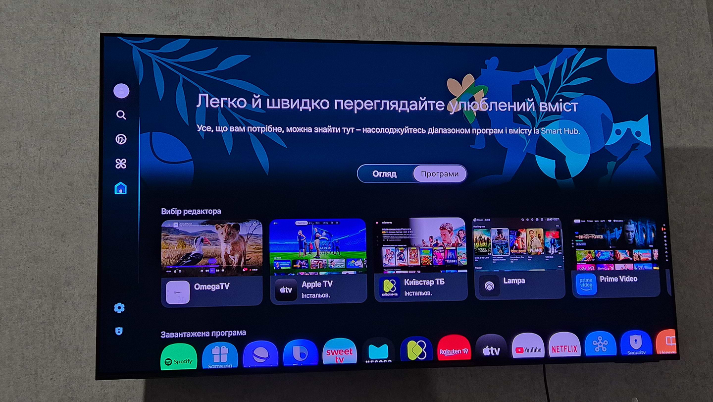 Вбудована служба доступу Smart Hub дозволяє підключити та керувати пристроями системи "Розумний дім"(включаючи тсумісні з Matter і HCA). Зручна мапа розміщена на екрані у форматі 3D. Отримуйте сповіщення про активність розумних пристроїв просто на екран телевізора.