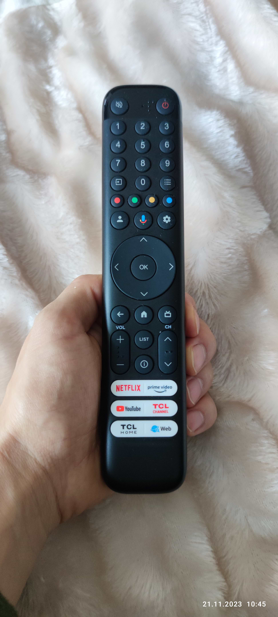 Пульт дистанційного керування, кнопки при написанні видають глухий звук. Як на мене краще без шуму відбувалося натискання кнопок. Ще не зрозуміло якщо є Wifi 6 то по повітрі швидкість більше ніж по Lan кабелю. У моєму випадку wifi тест швидкості був 220 мбіт.сек, а по кабелю 90-95мбіт.сек При тому що провайдер дає гігабіт. По факту по кабелю мало бути більша швидкість, або та сама, а тут навпаки чомусь. Треба буде якось поцікавитися у виробника TCL.