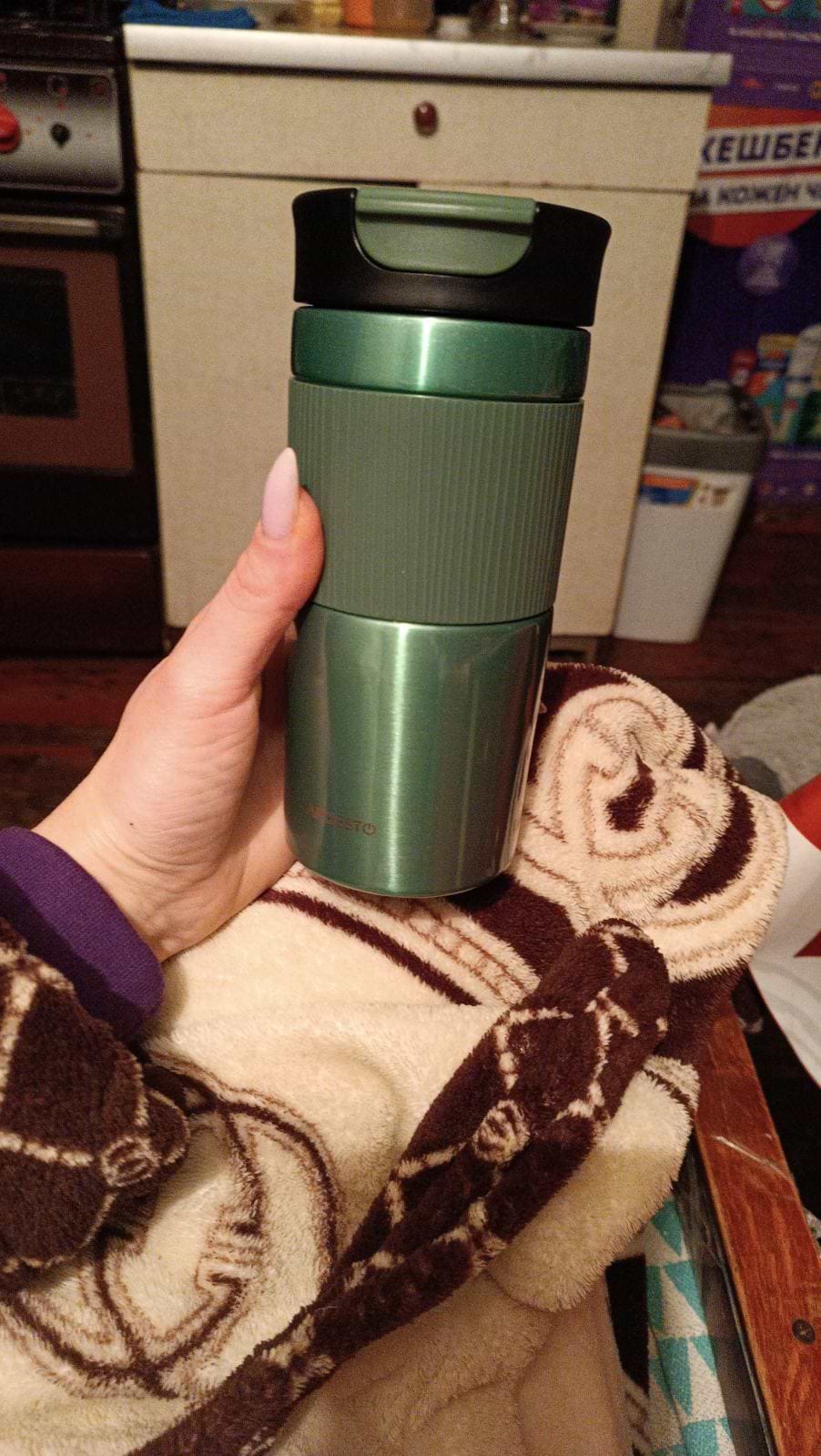Товар цілісний, без дефектів. Утримує тепло менше заявлених 8 годин, холодні напої не пробувала.