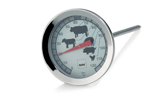 в сучасній кулінарії без термометра для м‘яса не обійтися! Тому придбали собі цей. Зручний, якісний. До цього був електронний, пропрацював гарно, але не довго. Табло перестало яскраво показувати температуру. Він працює, але роздивитися показники дуже важко. Тому купили цей. Все добре видно, легко користуватись. Рекомендую!