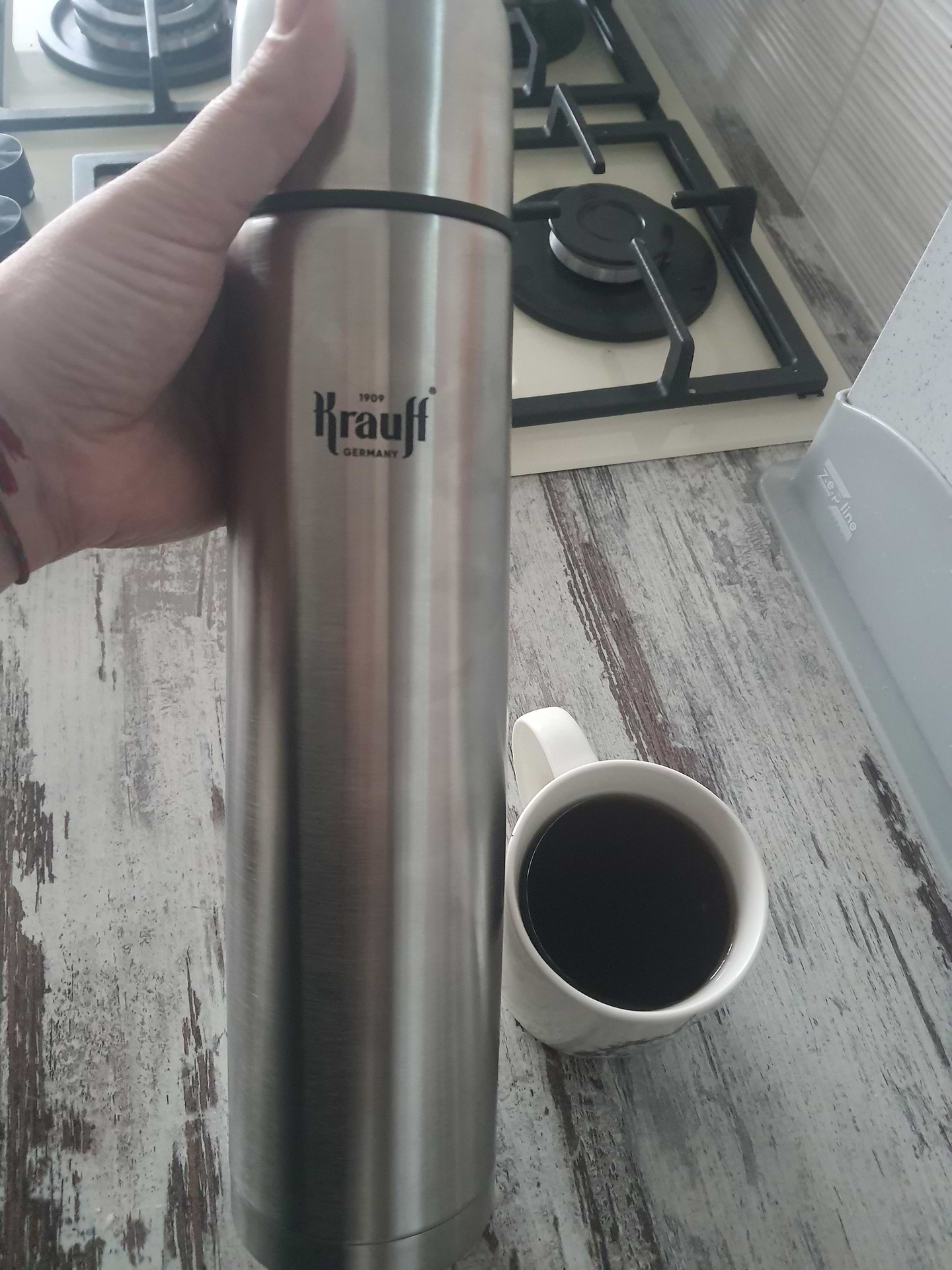 Купила недавно термос Krauf на 1200 мл.Гарний дизайн і добре тримає температуру.Раджу придбати.На дворі хрлодно, електрику вимикають а у вас завжли під рукою гаряча вода, абр ж чай/кава/какао/глинтвейн)