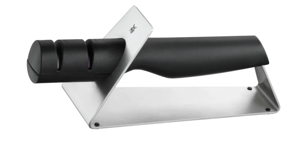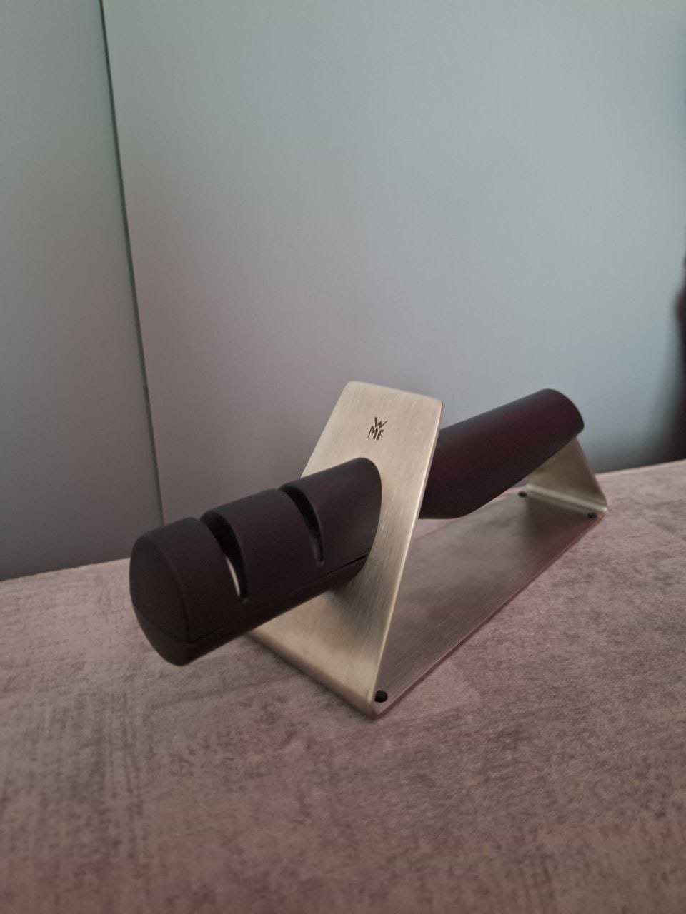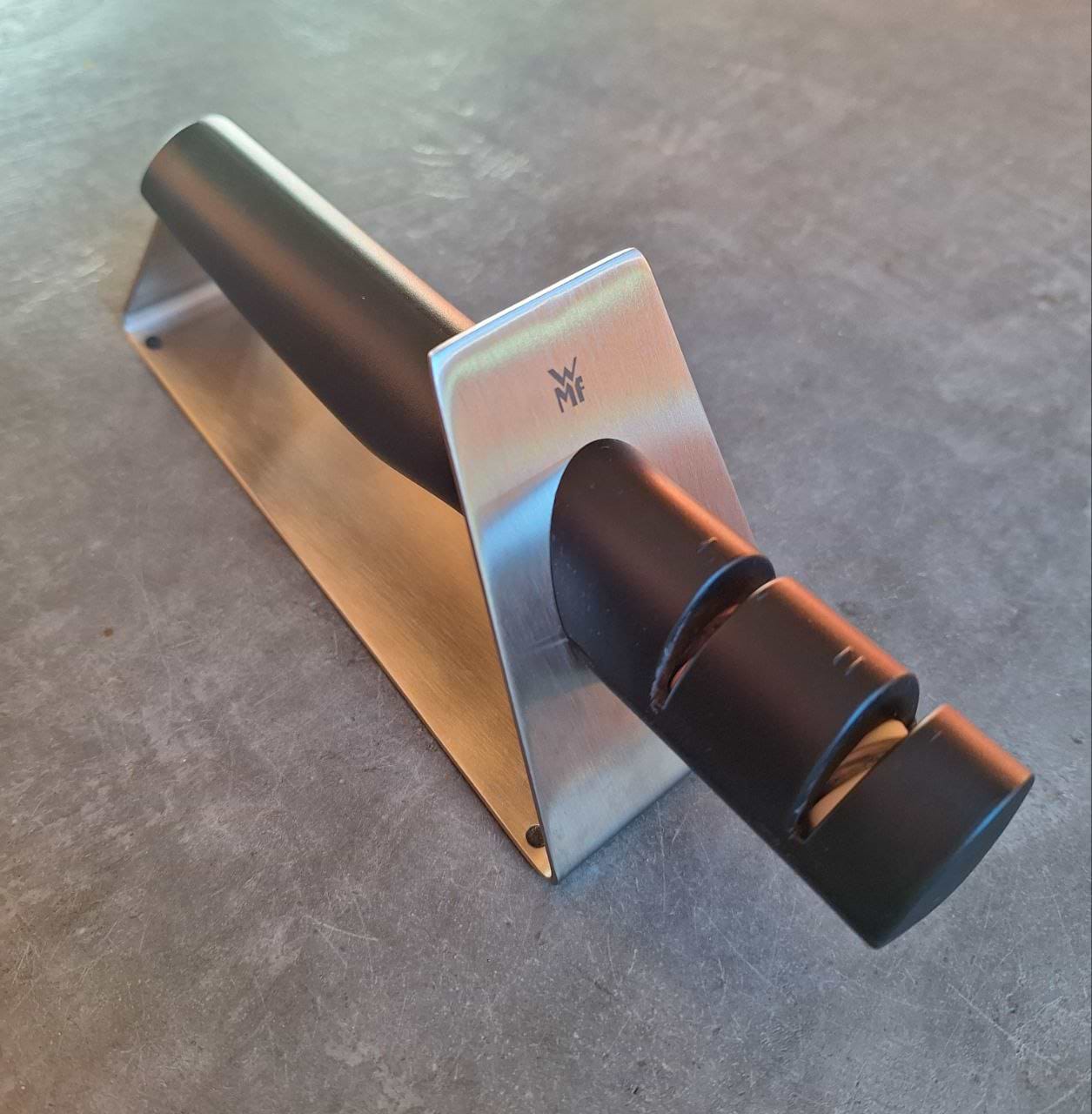 Якість від WMF, як завжди, на висоті. Точилка компактна, не ковзає під час роботи. Леза після заточування гострі, але без надлишку — саме те, що треба для кухні.