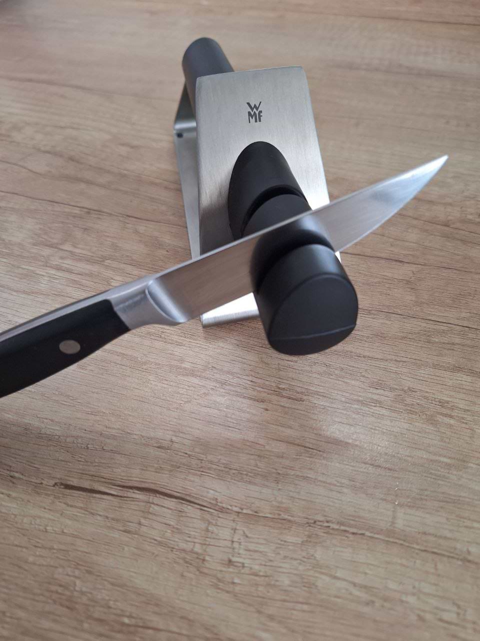Дуже задоволена покупкою. Точилка WMF GOURMET справді рятує, коли ножі тупляться. Два етапи заточування це зручно: спочатку швидко підправляю лезо, а потім полірую. Ножі знову ріжуть, як нові.