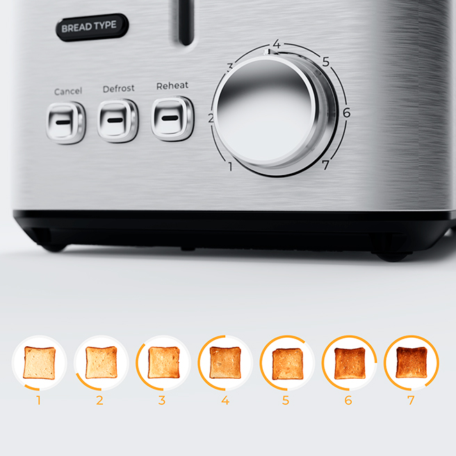 Завдяки тому, що на тостері встановлені 7 рівнів підсмажування кожен з користувачів може приготувати тост, який буде до смаку саме йому. Цей пристрій – це чудовий варіант для приготування швидкого сніданку чи перекусу в дорогу, без зайвих зусиль.