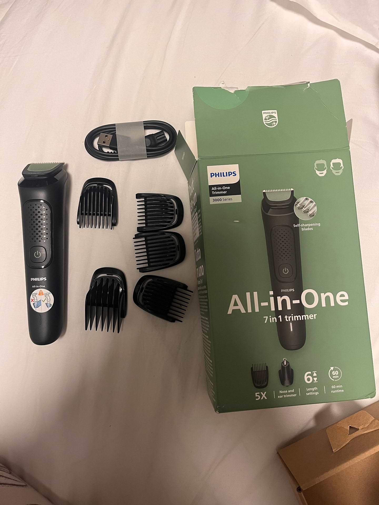 Якісний тример за свою ціну. Покупкою дуже задоволені.Має достатню кількість насадок. В комплекті йде шнур для зарядки, а самого блочка не має. В даний час це не проблема, адже блочок підходить від зарядки телефону і це дуже зручно. Має зручну форму, що приємно тримати в руці.