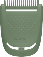Швидко та зручно підстригайте волосся на тілі за допомогою насадки для тіла. Насадка для інтимних зон захищає шкіру від контакту з лезом під час підстригання, забезпечуючи додаткову м’якість і безпеку.