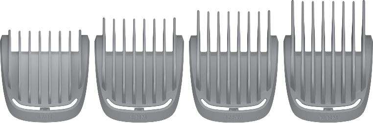 - 4 насадки для волосся: 4, 9, 12, 16 мм