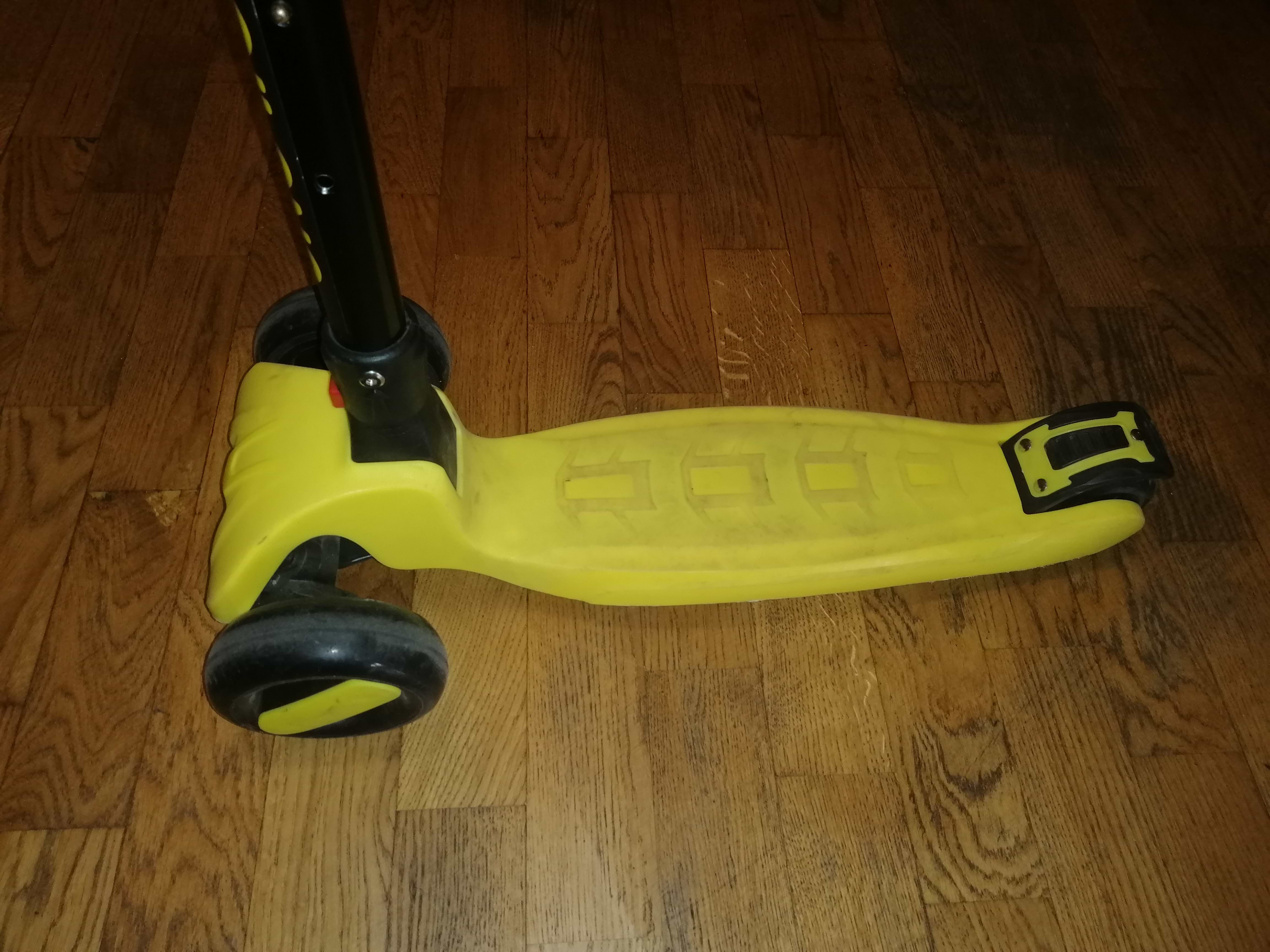 взяв жовтий для дитини 3 роки, самокат до 50кг, витримав дитину та дружину одночисно, так що запас міцності є. колеса світяться, за таку цінунормальний самокат