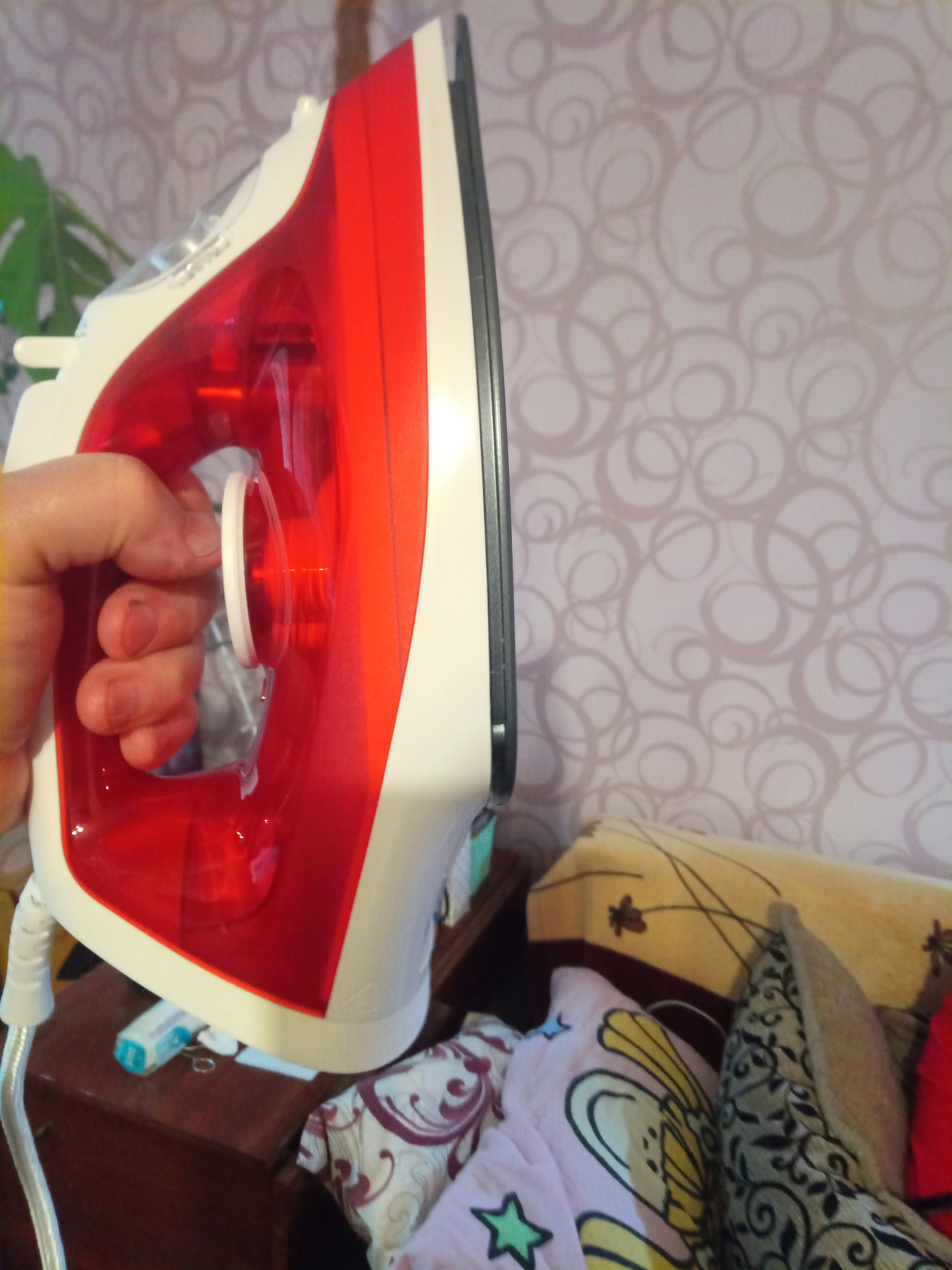 Хорошо греет, хорошо гладит, жене понравился, шнур длинный, вес нетяжелый.