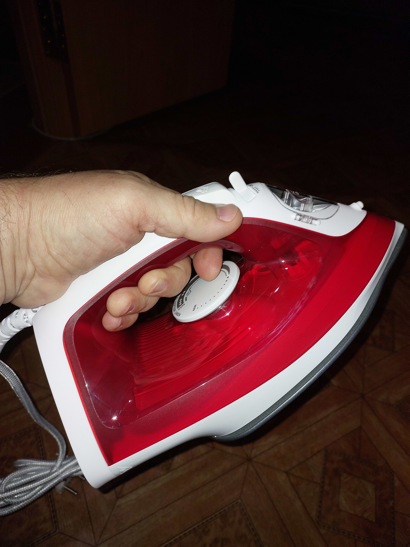 Компактна, зручно лежить у руці, а завужений "носик" робить прасування навіть найдрібніших деталей одягу легким і комфортним. Відмінно нагрівається, усі режими працюють бездоганно, і навіть після тривалого використання рука не втомлюється.
