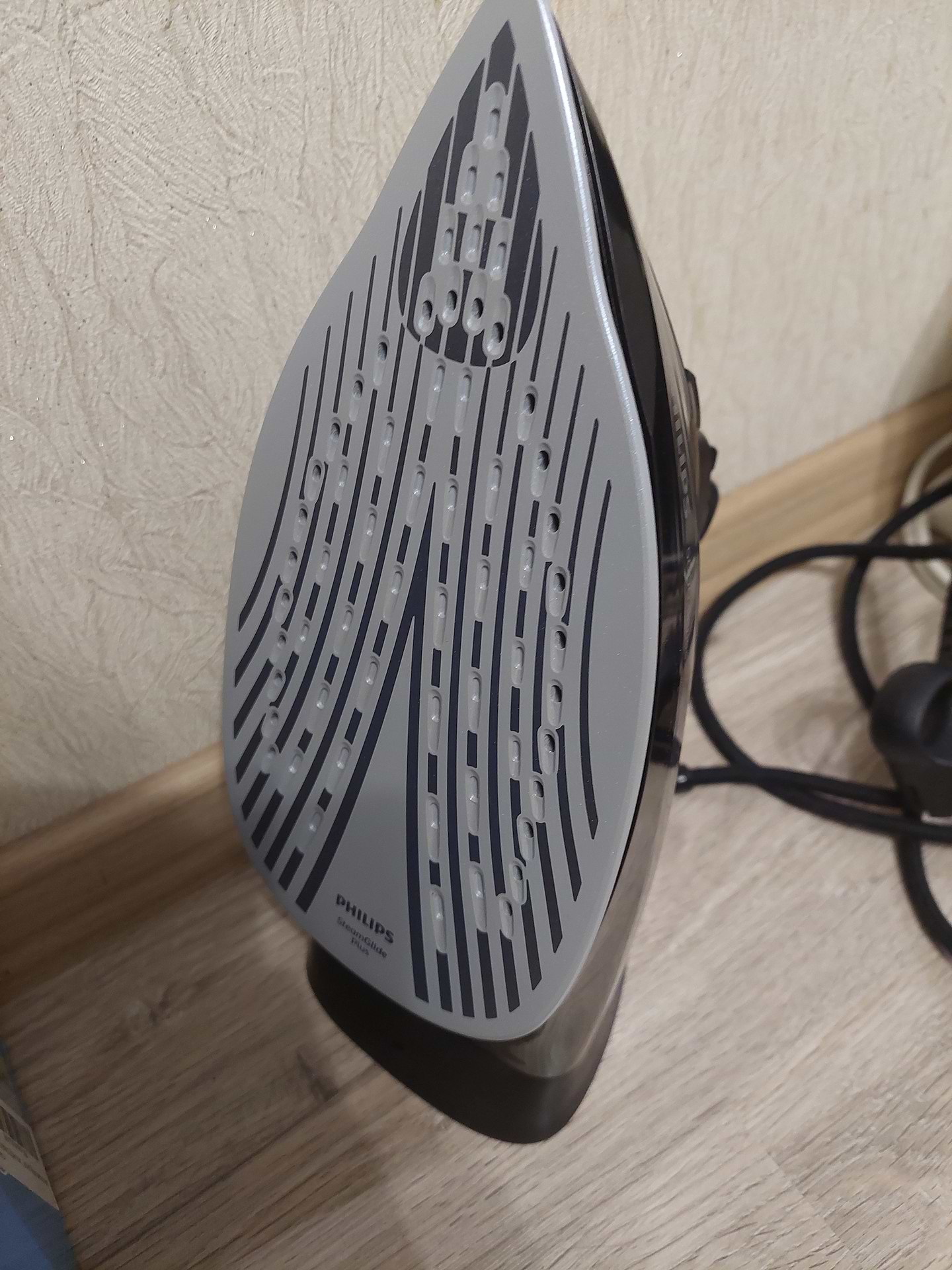 Праска працює відмінно! Гладка поверхня, легко ковзає, чудово відпарює, зручно тримати