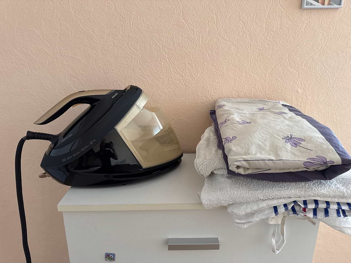 Апарат - жир. порівняв з звичайною праскю - небо і земля! Прасування стало швидшим та легшим (так дружина говорить)))