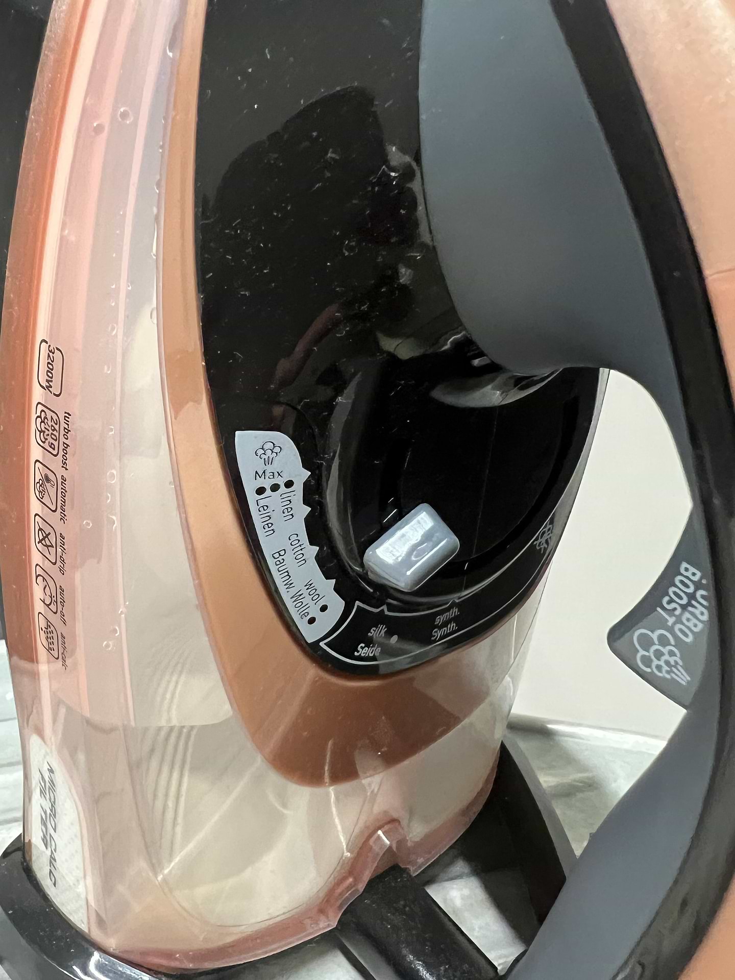 Дизайн крутий.Тяжкий.Відпарює на 100% круто прасує.Але пише що антикрапля,але каплі пропускає відразу,надалі як розігріється норм.Гріється швидко.Якщо забув виключається.Великий обєм для води.Довгий шнур .